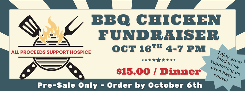 High Peaks Hospice will be having a BBQ Chicken Fundraiser on October 16th from 4-7pm.